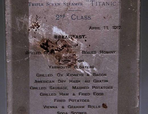 1912年4月11日,沉船3天前,二等乘客的食物包括玉米粥、熏肉,炸土豆,荞麦饼等等…相比头等舱,二等舱的餐点相对就少了许多,去掉了冷盘,以热菜为主。而且大部分主菜以肉类为主,有鸡肉、火鸡等相对便宜的肉类,羊腿、海鲜类就都没有了,救生艇的设置和别的客轮一样,泰坦尼克号也把它们安排在了头等舱和二等舱附近,这么安排的目的,其实也是以降低富人和中产阶级乘客对航海风险的担心,泰坦尼克号航行过程中,一位船员对曾二等舱女乘客西尔维亚·考德威尔说:“就是上帝亲自来,他也弄不沉这艘船”。