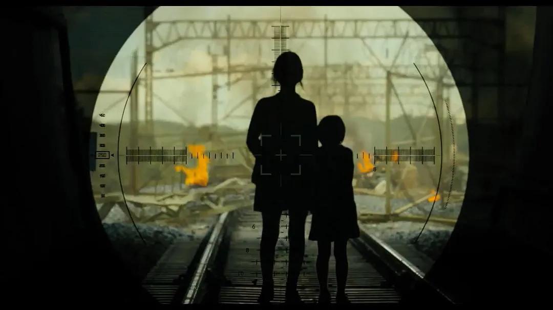 当孕妇和男主女儿走在轨道之下的时候,两人牵手前行。军人在不知道两人是否是活人的前提下,想要将两个人击毙。