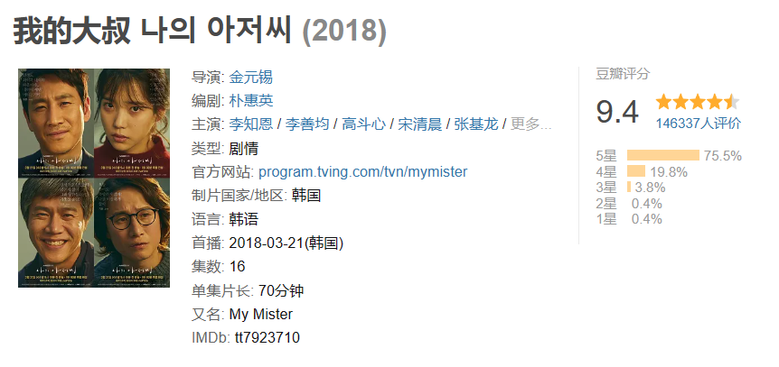 ⑤我的大叔 评分9.4