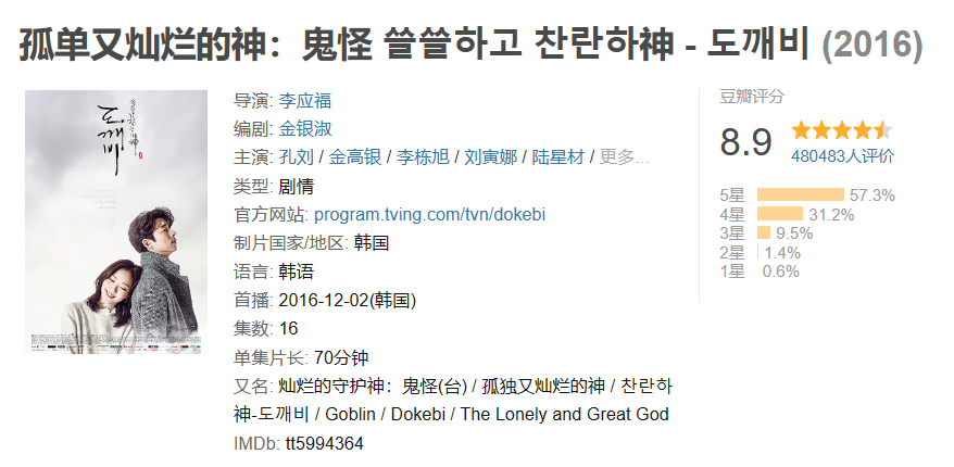 ⑧孤单又灿烂的神-鬼怪 评分8.9