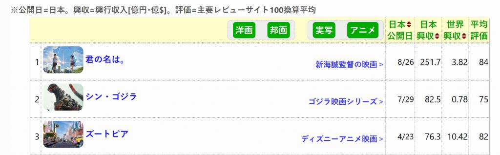 2016 年日本电影票房排名(数据来源:pixiin.com)