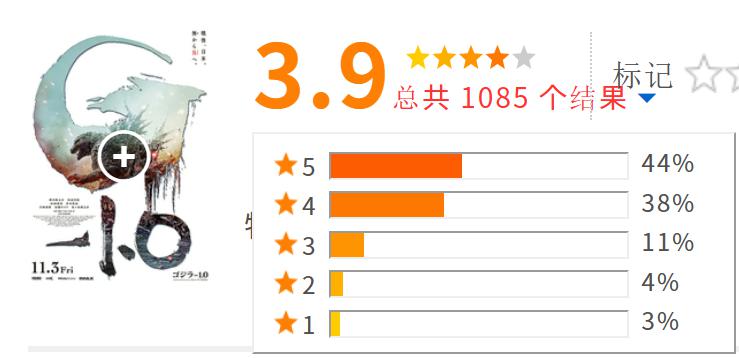 《哥斯拉 -1.0》在映画 .com 上获得的评分