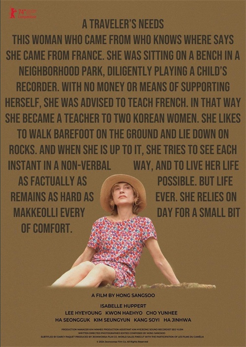 这部电影由伊莎贝尔·于佩尔、李慧英等主演,以独特的视角展现了旅行者的内心世界和需求,带你领略不一样的韩国风情。影片中的场景和人物动态丰富,叙事技巧也颇具特色,是一部充满惊喜的作品。