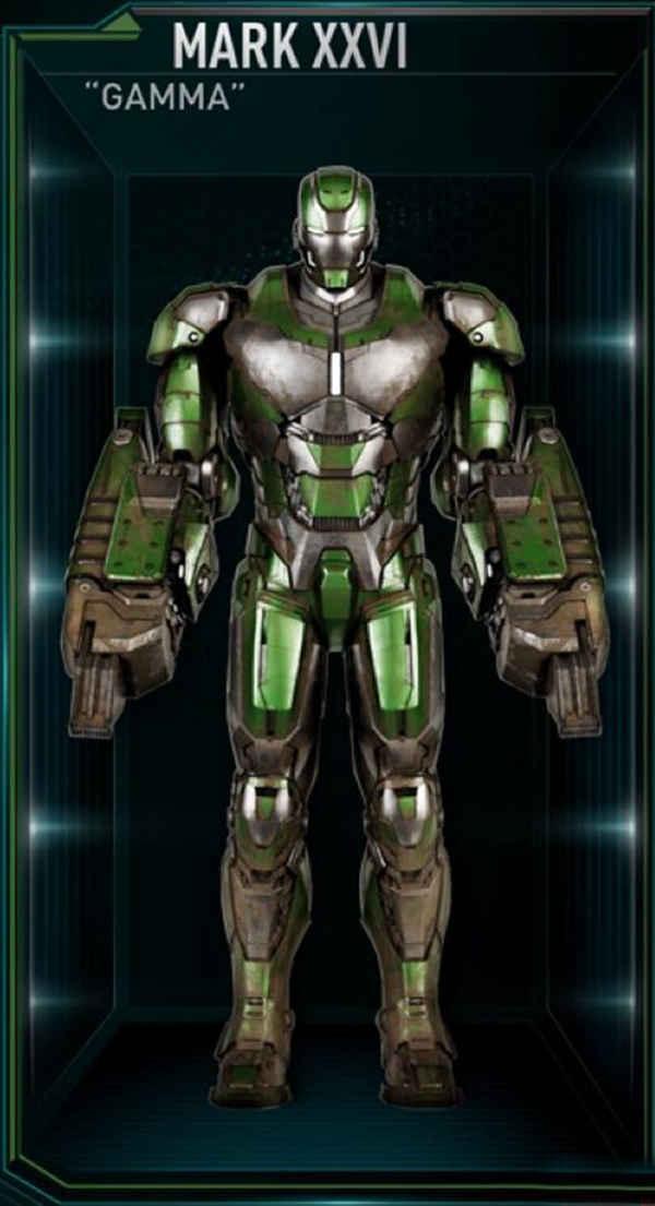 伽马是托尼的第一套防辐射装甲,可以在核辐射重污染区域作业,可承受超高温和超大电流冲击。