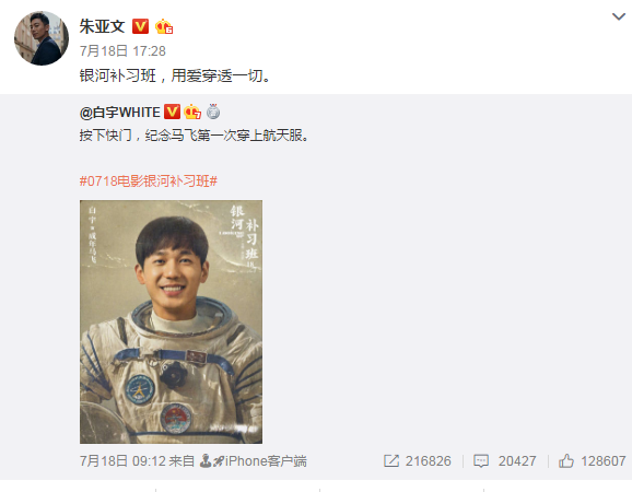而在邓超退出跑男后才加入跑男担任MC的朱亚文也发文表示对的邓超新电影的期待,只不过他是从白宇的微博中转发。