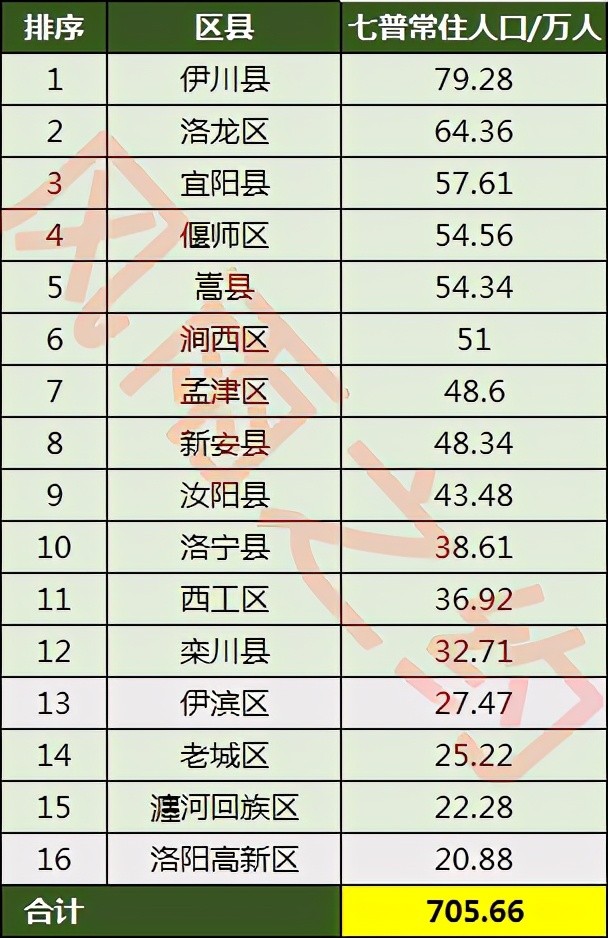 洛阳各区县人口一览:洛龙区64万,新安县48万