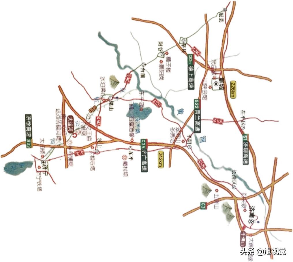 路线推荐:济南-聊城-莘县-梁山-济宁-东平-平阴-济南