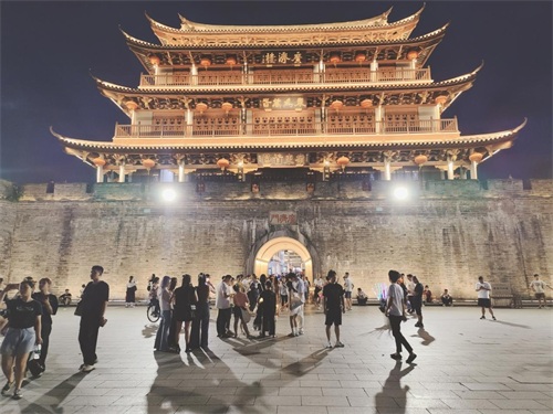 城楼聚集人流。
