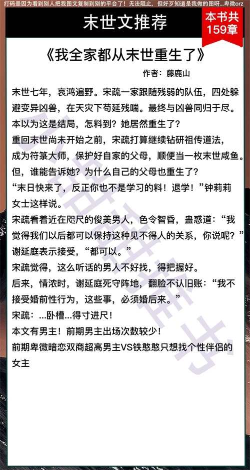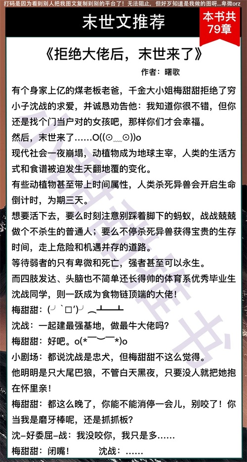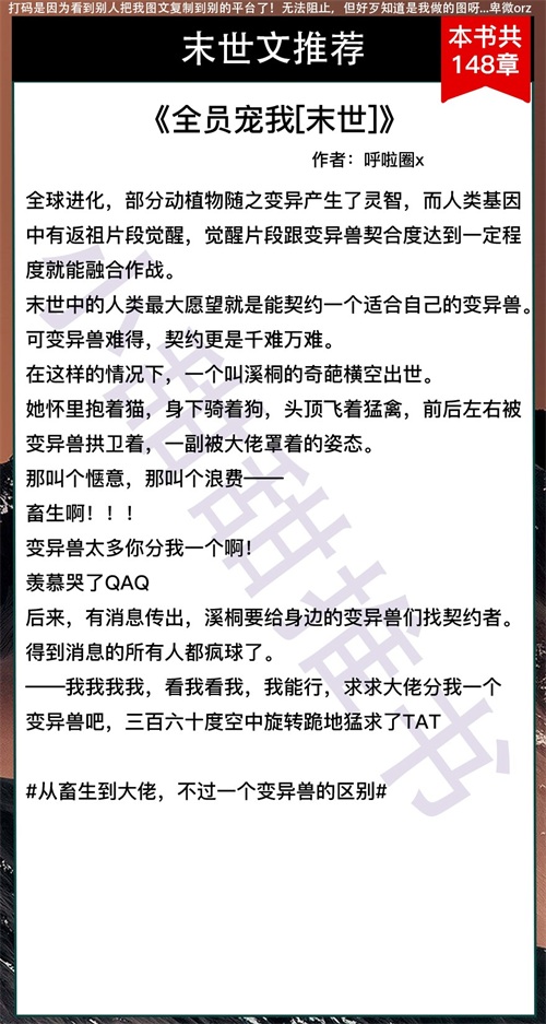 大家好,我是小甜甜,每天给大家推荐好文。这期给大家推荐的是6本强强末世文!末世的男强女强甜文!