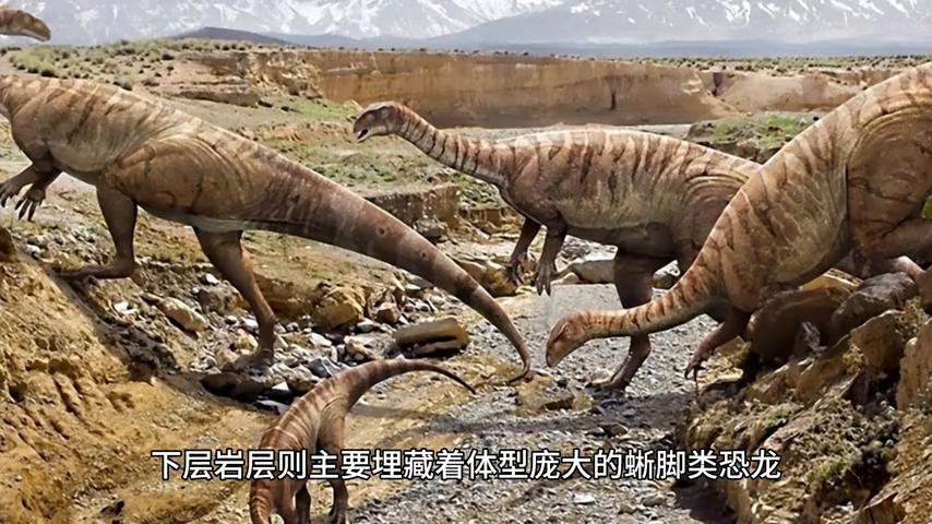 下层岩层则主要埋藏着体型庞大的蜥脚类恐龙,但它们的保存并不完整显然是经过搬运的结果。因此一些学者推测恐龙是在异地死亡后通过某种方式被搬运到这里并被掩埋的。