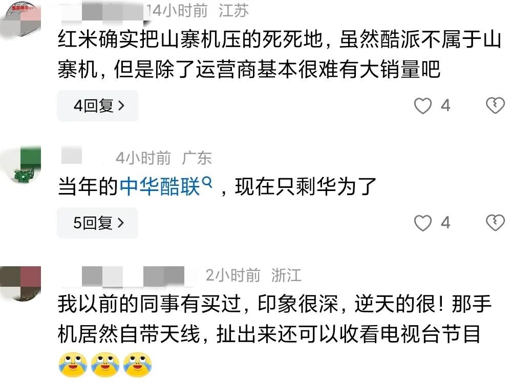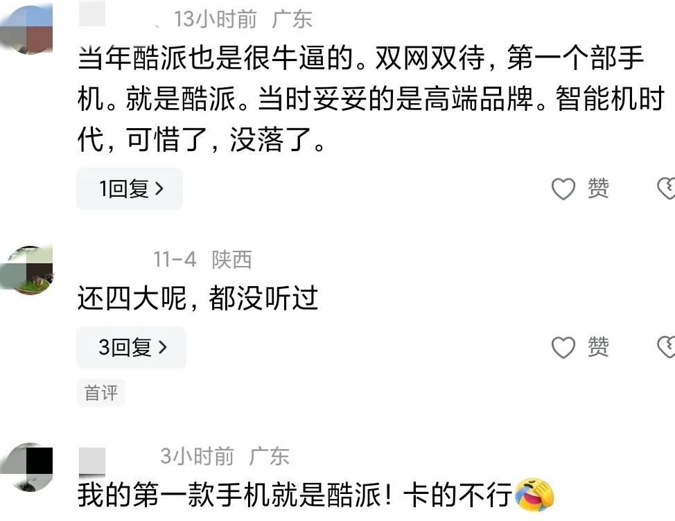 更有网友感叹:“当年酷派也是很牛逼的。双网双待,第一部手机就是酷派。当时妥妥的是高端品牌。智能机时代,可惜了,没落了。”