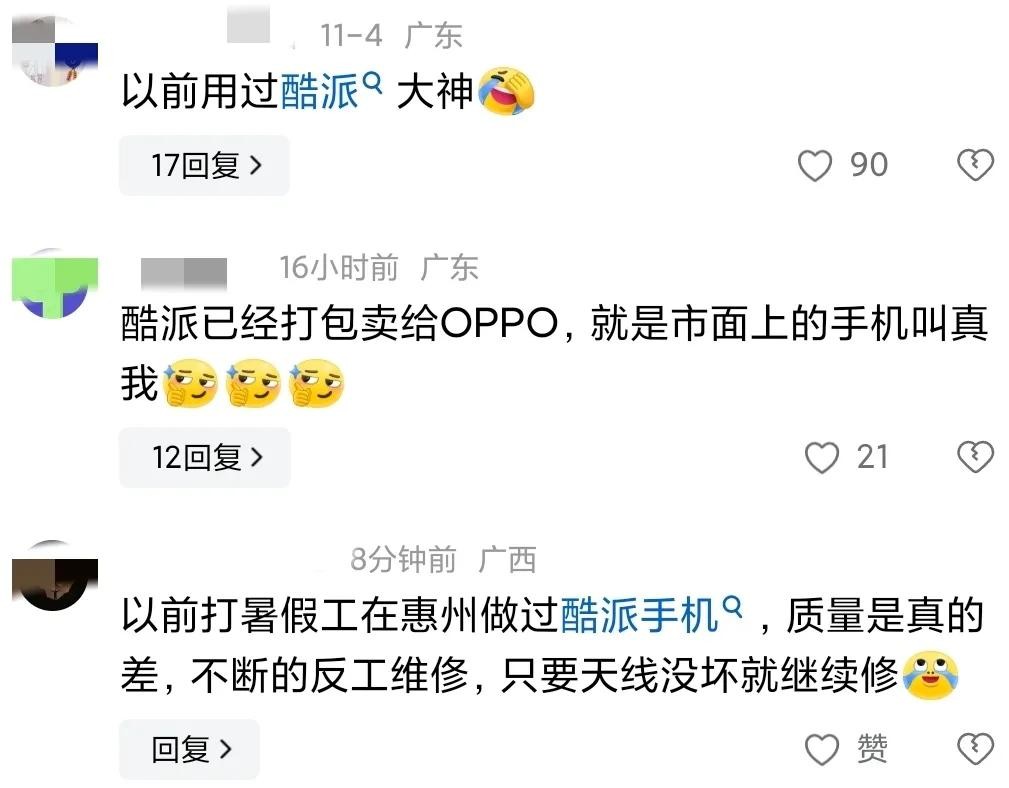 有网友说:“酷派已经打包卖给 OPPO,就是市面上的手机叫真我。”