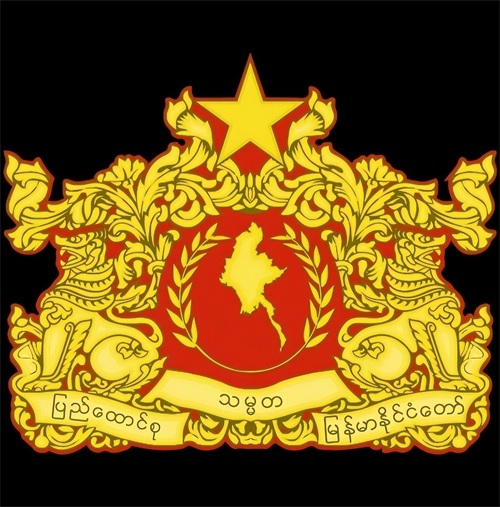 缅甸的现行国徽于2010年10月21日开始使用,基于1974年版国徽进行了修改。新国徽中央是缅甸版图,被橄榄枝环绕,两侧是圣狮作为守护兽。两者之间有花卉状的图案,顶端有一个象征独立的五角星。下方是一条绶带,上面写着“缅甸联邦共和国”。随着国家政制的改变,新国徽相对于旧国徽进行了一定程度的修改,删去了旧国徽上常见的齿轮和稻穗等图案,改为橄榄枝环绕缅甸版图。