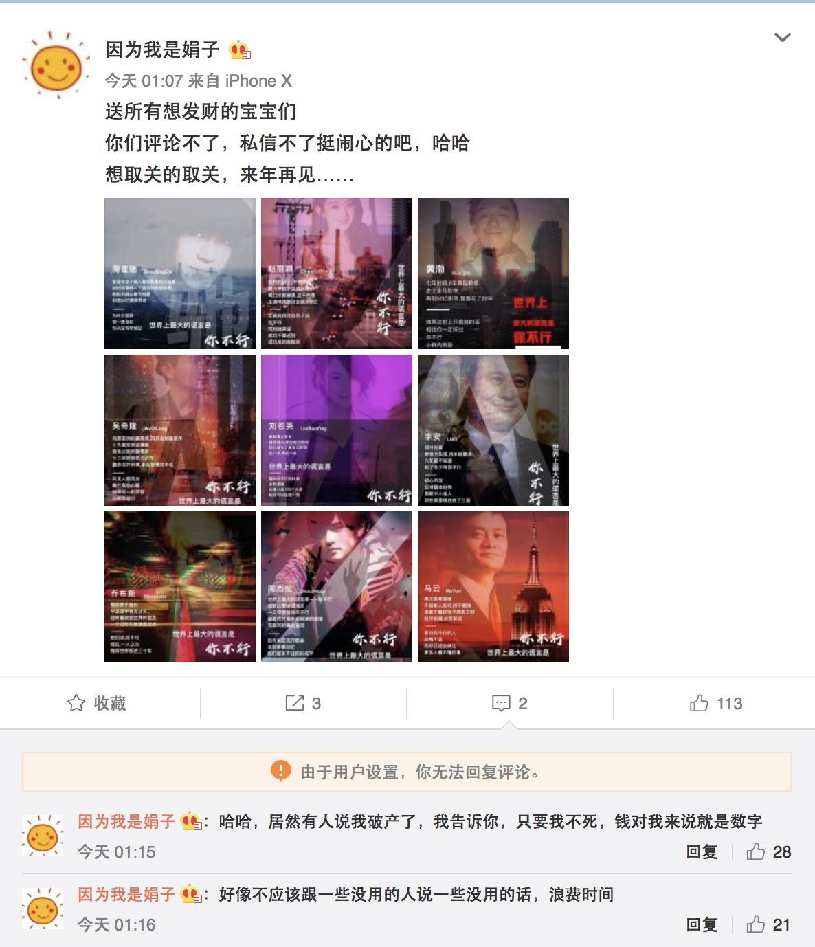 而琪琪在发布讨债微博后,突然清空了自己的微博,只发布了一条“想取关的取关,来年再见”的微博,被很多网友质疑破产,毕竟之前主播会计门闹得沸沸扬扬,琪琪这个行为也很容易就让人联想到类似事件。