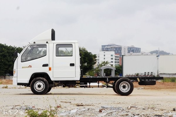前后桥钢板弹簧3/5。采用212后桥,速比4.333,搭配185R14LT规格的后双胎能提供良好承载能力。