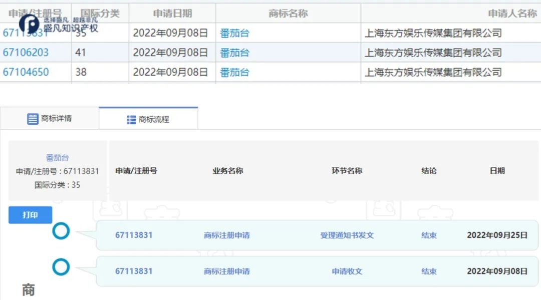 近日,上海广播电视台、上海东方娱乐传媒集团有限公司申请注册多枚“番茄台”“东方卫视番茄台”商标,国际分类涉及通讯服务、教育娱乐、广告销售等,当前商标状态多为申请中。
