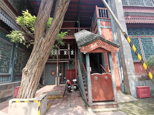 乐家老宅连接西北楼的木质门楼和连廊,精致的造型和装饰。