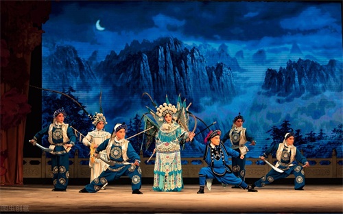 京剧场景布置注重写意,腔调以西皮、二黄为主,用胡琴和锣鼓等伴奏,同时又接受了昆曲、秦腔的部分剧目、曲调和表演方法,吸收地方民间曲调,是通过不断的交流、融合的结晶。