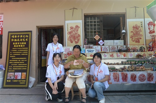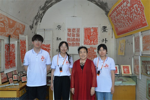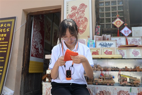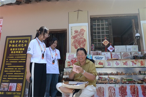 实践队成员向非遗传承人高志琴学习剪纸技艺