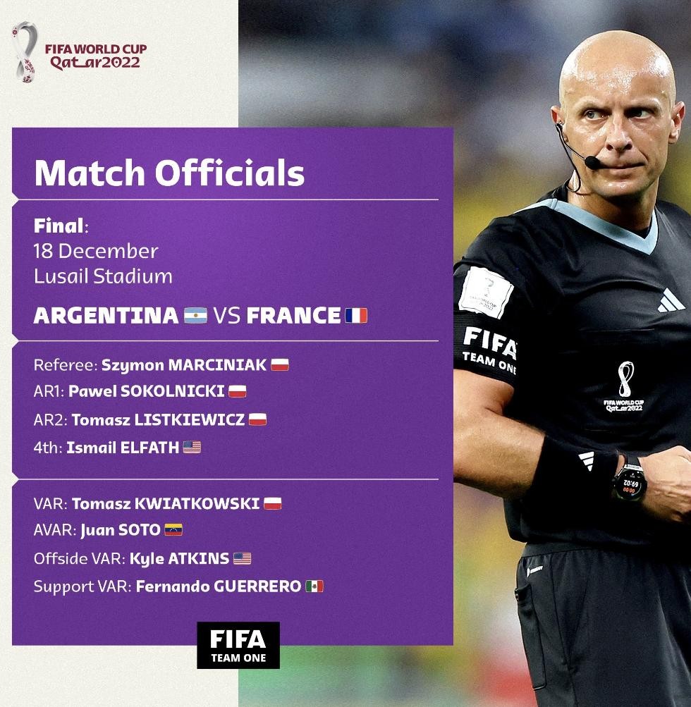 北京时间12月16日,世界杯决赛的对阵双方已经出炉了,阿根廷大战法国。而现在国际足联正式官宣,本次决赛的裁判也已经揭晓了,将是来自于波兰籍的裁判马齐尼亚克。