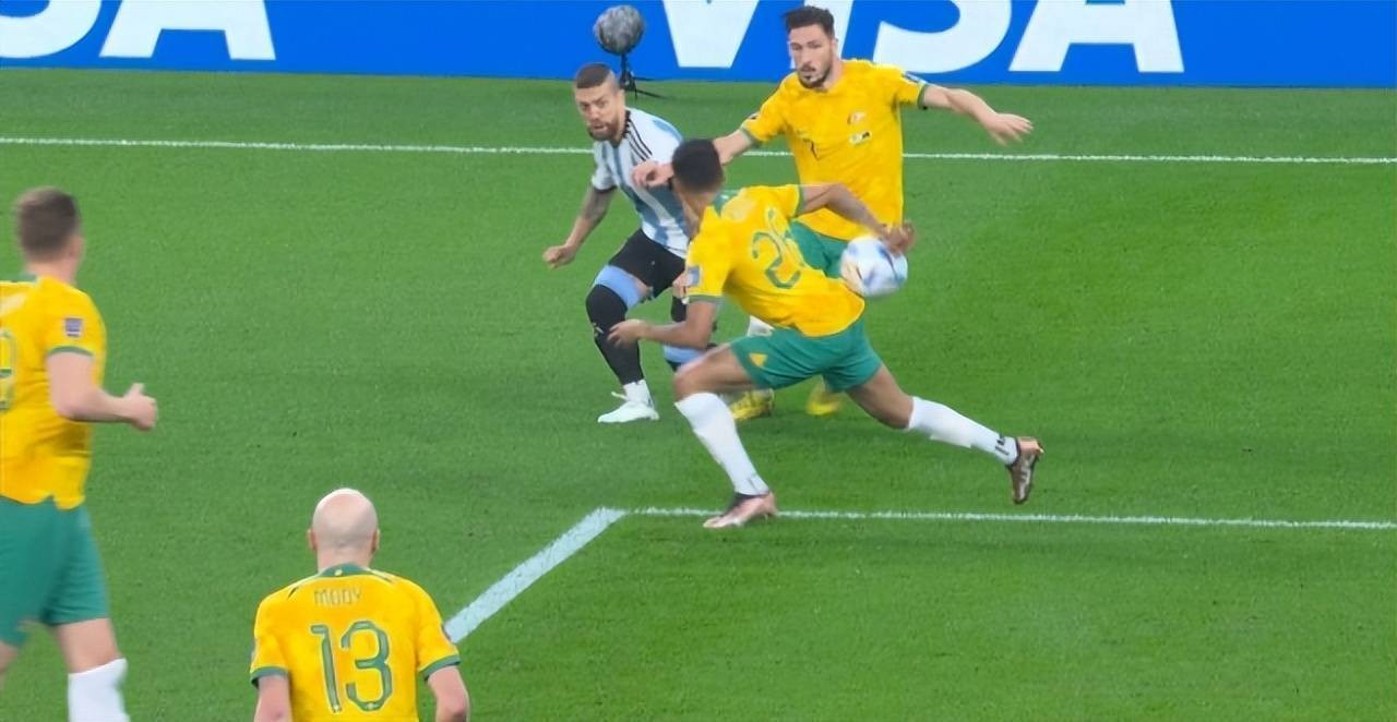当时比赛开始只有5分钟的时候,这个争议就来了,阿根廷这场比赛使用的戈麦斯首发,戈麦斯冲澳大利亚禁区左侧起脚传中,澳大利亚队的球员当时眼看戈麦斯得球,从他背后就过去了,因此很着急,眼看拦不住了怎么办呢?澳大利亚的后卫在禁区里竟然伸出自己的右手把球给挡出去了,就眼看身体已经拦不住了,用手把球给拦下来,完成了一个解围,然后裁判示意啥事都没有,澳大利亚队反击。