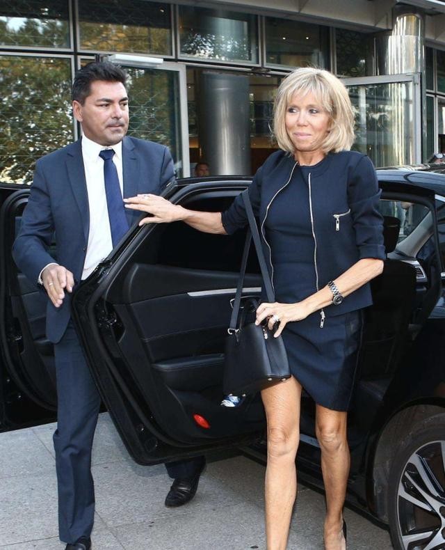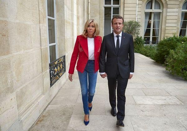 也正是因为此,才会让布丽吉特虽然比马克龙大24岁,但看起来总是更显年轻和时尚。白色的T恤打底,搭配蓝色小脚牛仔裤,在展现出了纤细的小鸟腿的同时,也让整个人看起来清爽而又优雅。搭配上蓝色高跟鞋拉长了整体身材比例,能够显得高挑而又轻清爽,和马克龙十指紧扣走在路上的时候,反而更像是一位少女。