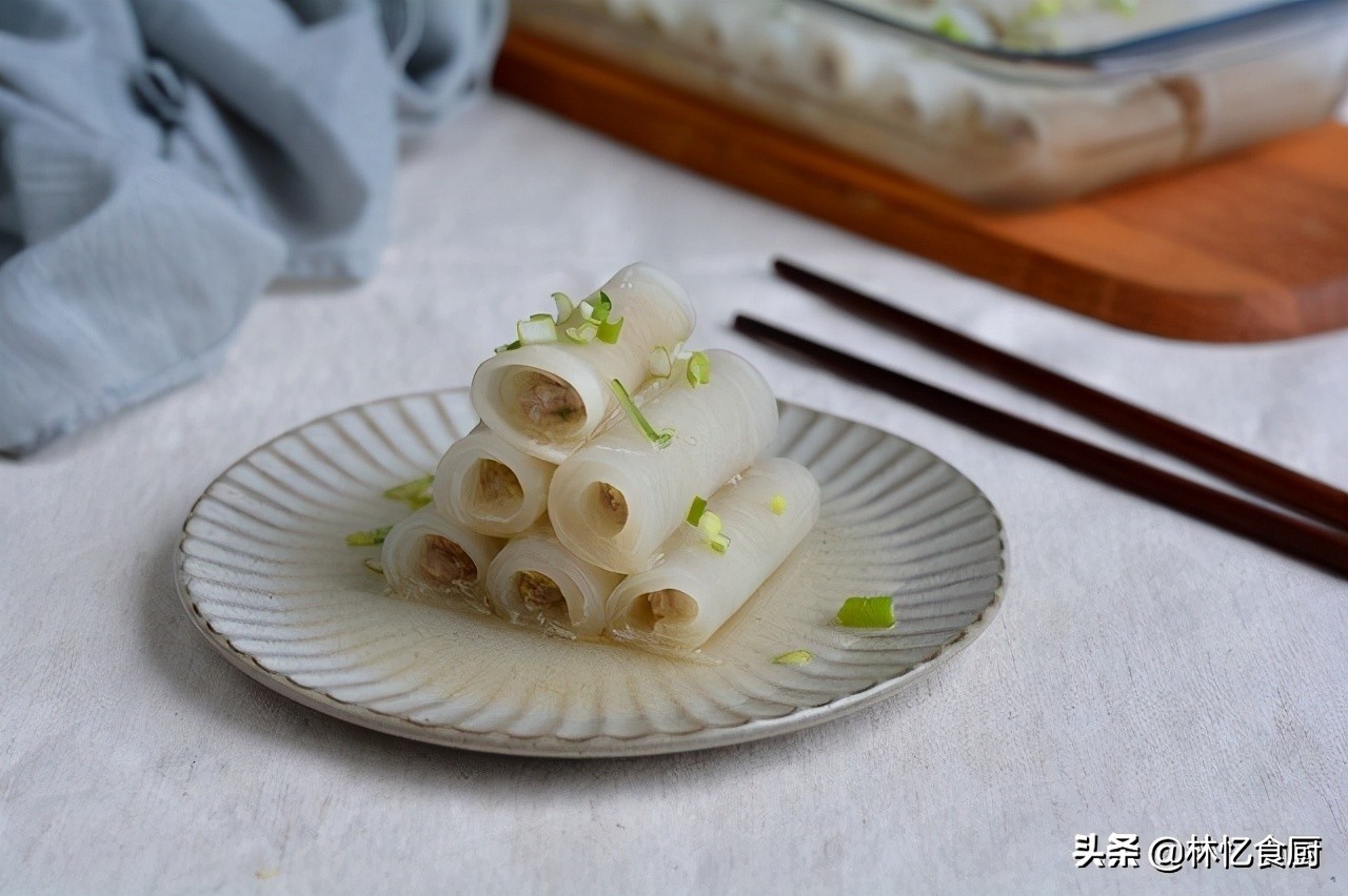 现在萝卜正便宜,不到一元钱一斤,两根就能吃上一顿,可以说是非常的划算。喜欢吃萝卜的朋友,不妨将萝卜搭配猪肉和鸡蛋做一道蒸菜。将调好的肉馅填满萝卜片,卷起后摆盘,蒸熟就能上桌。萝卜片薄,裹上嫩滑的肉馅,不用蘸酱料就满口流汁,有萝卜的清香,吃起来一点也不油腻,可以说是一道非常值得推荐的拼盘,不管是待客还是自己吃都非常上档次。