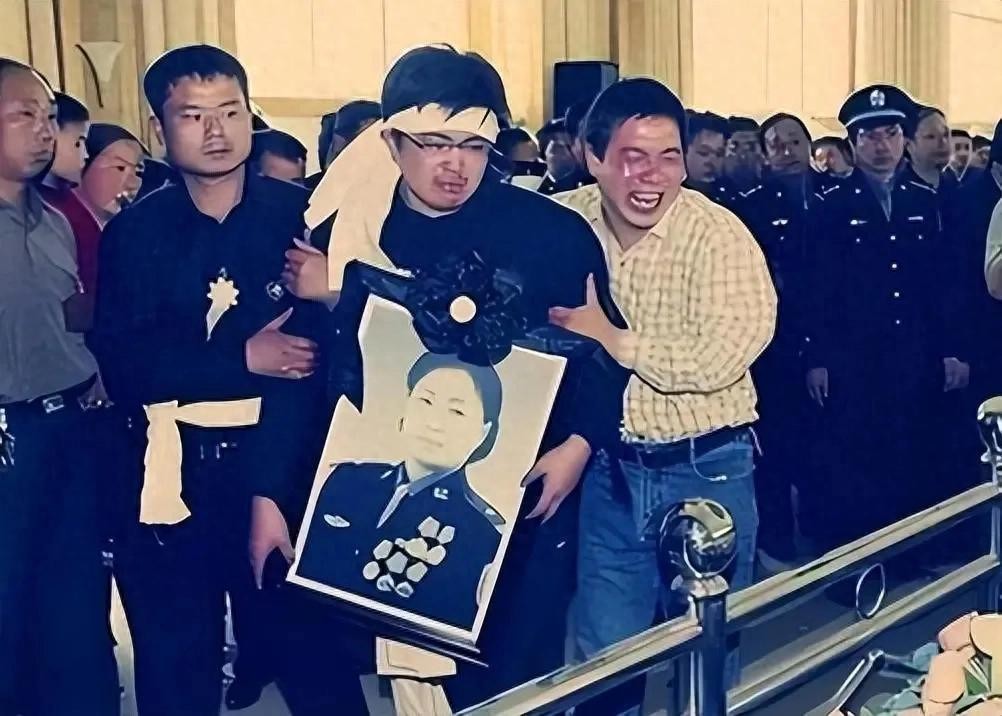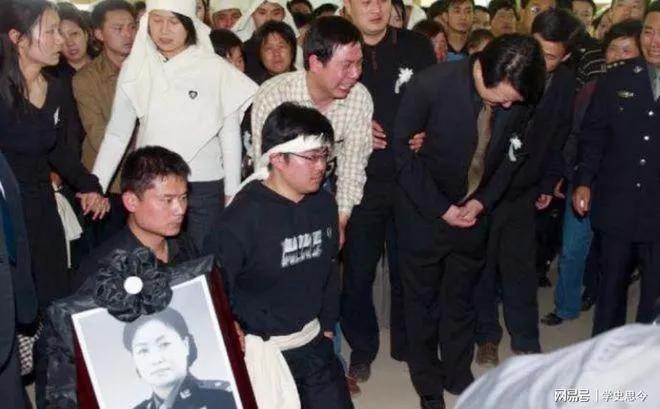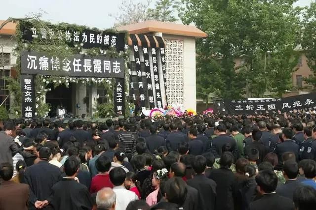 2004年,任长霞葬礼的现场,儿子抱着遗像泣不成声,数万群众送行