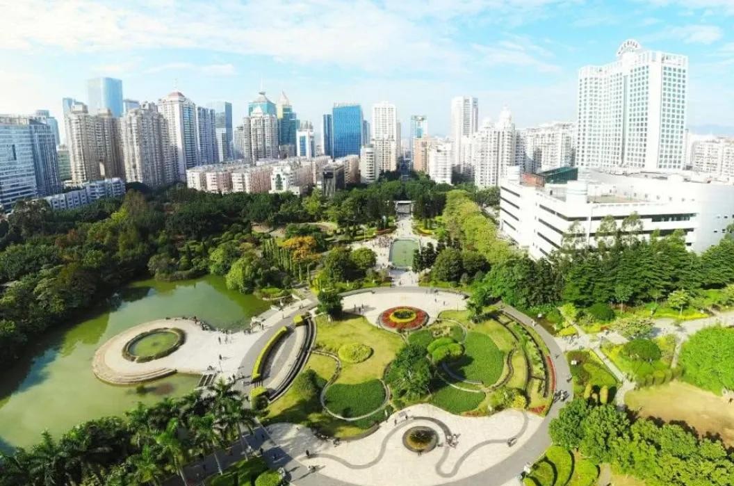 这个金字塔相信当年有去过温泉公园的小童鞋都有印象。可不知道为何突然一夜间就拆了,有谁知道原因吗?总觉得有点遗憾,从来没有到金字塔里面玩耍过。居然就拆了。来张对比图吧,下图是拆除后的中心位置,现在是一个花台,如果有节假日一般就会将核心装饰景观设立在此。此图也可以看到周围高楼林立,实际上温泉公园也是福州第一个毗邻CBD的公园。