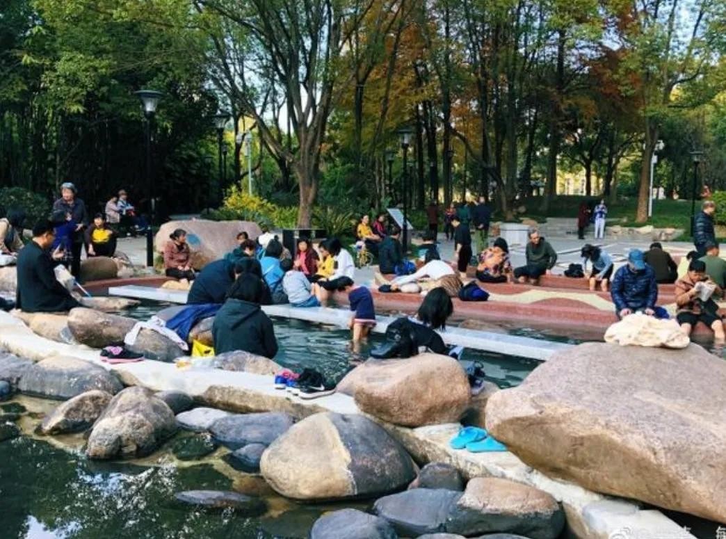 上图的温泉小品,引入温泉活水进渠,大人在这里可以泡脚,小朋友在此戏水,不亦乐乎哈。可惜的是,2020年因为疫情这里已经暂停温泉供水至今。