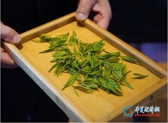 现场,茶艺师傅还为两岸媒体表演了信阳毛尖的泡茶技艺。这里的茶艺师使用的是一套独特的泡茶神器——套杯。茶艺师表示,“绿茶我们讲究用玻璃器皿冲泡,茶汤分离”。泡绿茶之前,要有一道温杯子的过程,这是为了避免泡茶时的温差,以保证茶叶的口感和汤色。