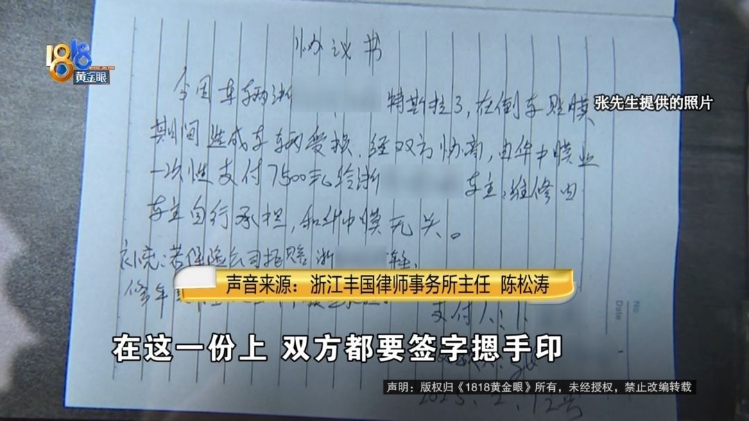 浙江丰国律师事务所主任 陈松涛:这个可能存在一个重大误解的情况。因为你当时跟他们谈赔偿协议的时候,一开始以为只有保险杠这边有点损失。但是最后在4S店查出需要更换大灯,导致你的损失远远超过七千五,变成两万多了。所以一般情况下根据实际损失来确定赔偿金额。