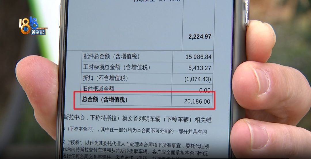 配件加上工时费一共是20186元