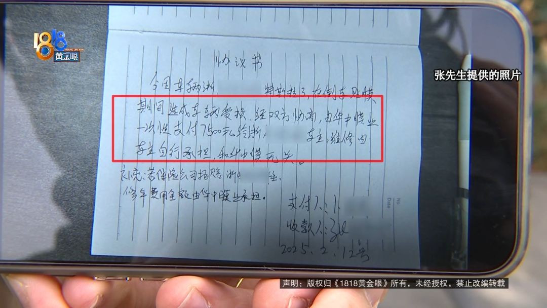 华中膜业一次性支付7500元给张先生