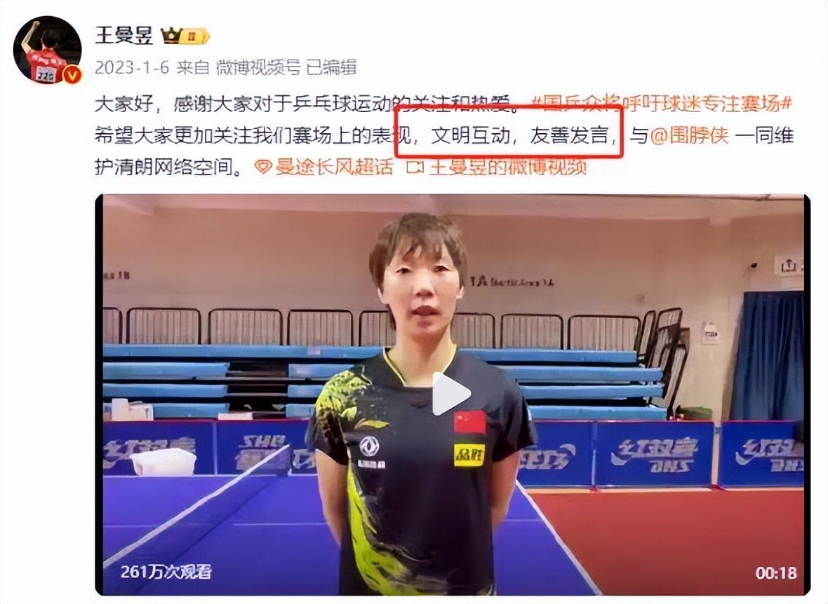 可能是一些粉丝过于护主心切,比赛期间现场竟然出现了对王曼昱的恶意攻击,诸如打球太脏、真想打你之类的声音,干扰了运动员的正常比赛。