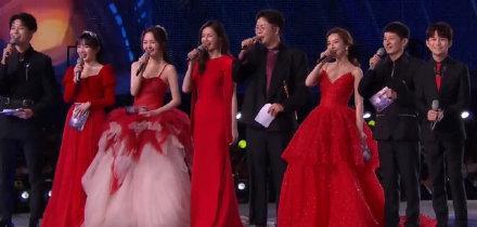 晚会一开始由主持人介绍,这么隆重的时刻,吴昕、杜海涛、李维嘉、钱枫等几位老台柱全程照着手卡读。