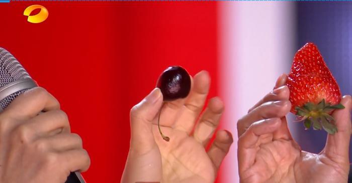 在舞台上卖车厘子和草莓,这是直播带货现场吗?