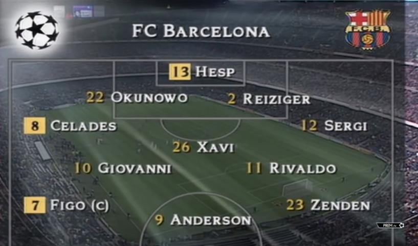 这场比赛是如此关键,但范加尔排出的首发阵容相当疯狂:海斯普、塞尔吉、雷齐格、奥库诺沃、塞拉德斯、哈维、里瓦尔多、吉奥瓦尼、岑登、菲戈、索尼·安德森。尼日利亚后卫奥库诺沃当时才19岁,本场出现在了首发中后卫的位置;中前场6名球员中,没有一名纯防守型球员,其中哈维才18岁,里瓦尔多、吉奥瓦尼、岑登、菲戈、索尼·安德森全部是进攻型球员。
