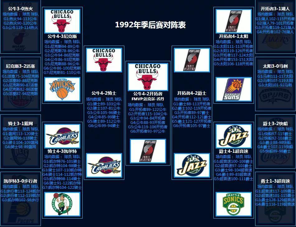 1992年季后赛,公牛队获得总冠军!FMVP是迈克尔乔丹