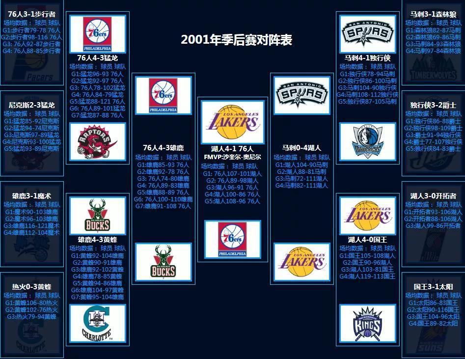 2001年季后赛,湖人队获得总冠军!FMVP是大鲨鱼奥尼尔