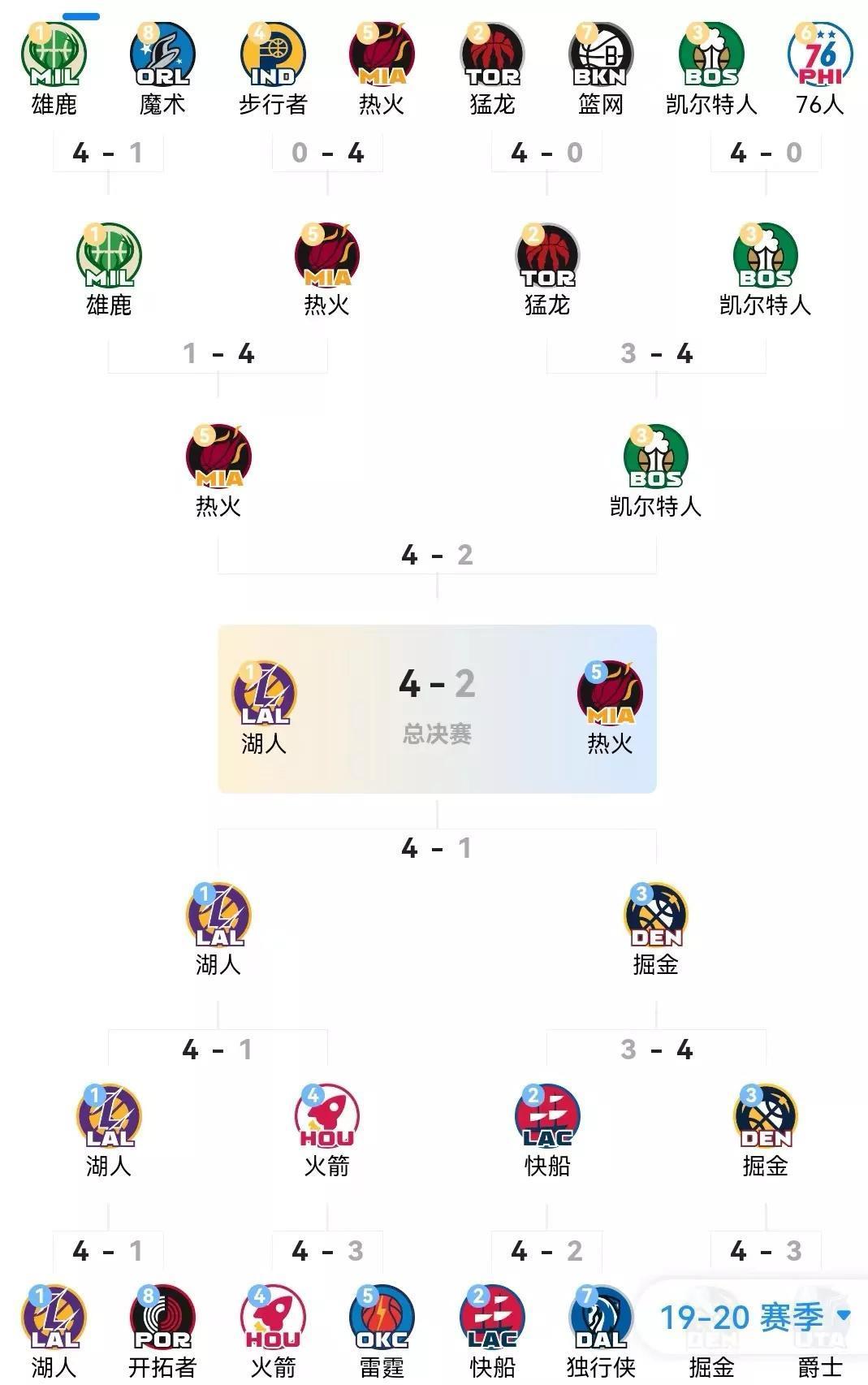 2019-20赛季NBA季后赛对阵图