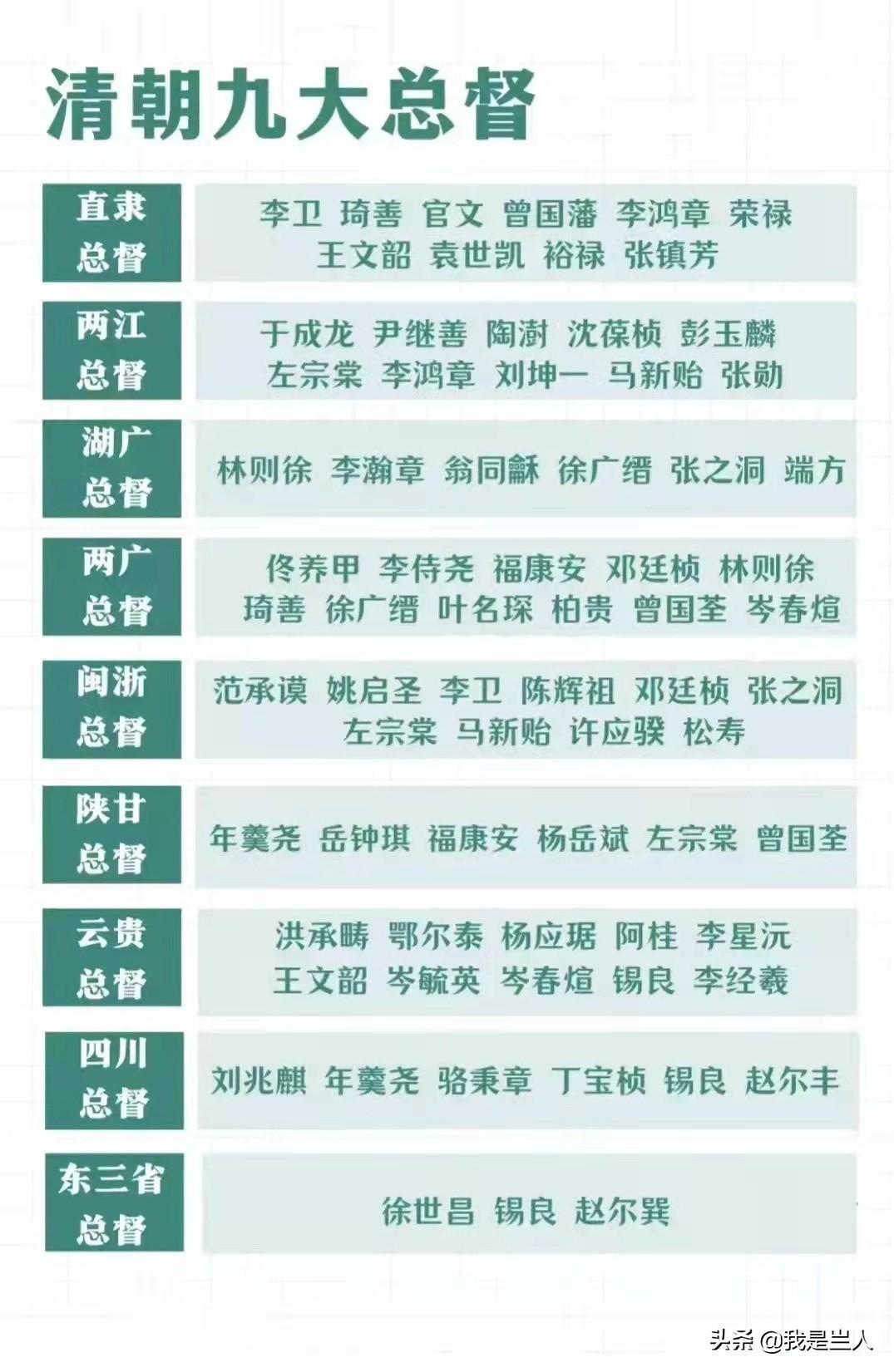 湖广总督:全称“总督湖北湖南等处地方提督军务、粮饷兼巡抚事”。总管湖北和湖南的军民政务。因湖南、湖北两省在明朝时同属湖广省,故称为湖广总督。