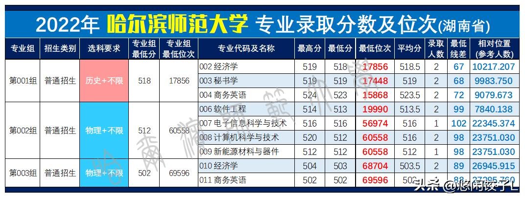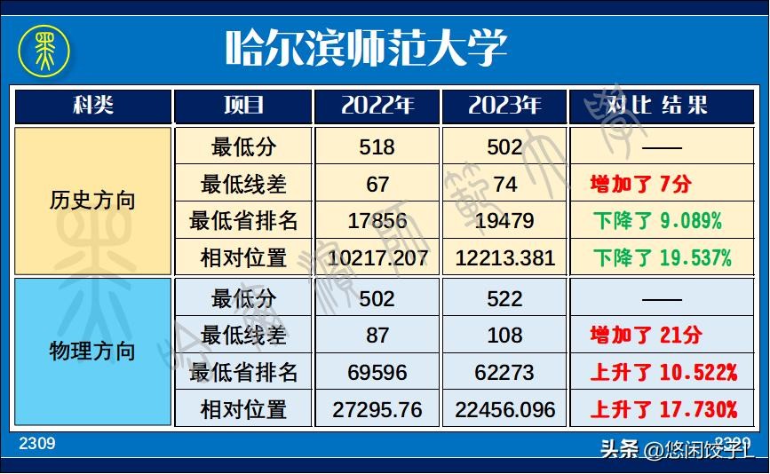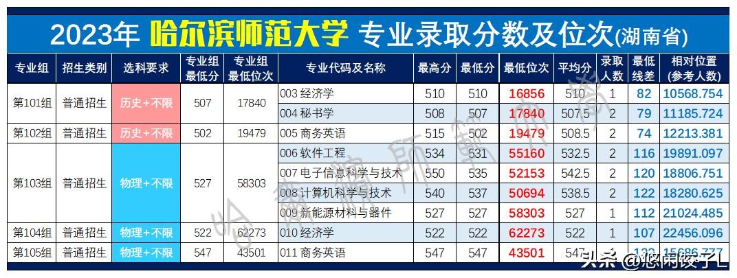 哈尔滨师范大学2022-2023年各专业录取分数和位次情况对比