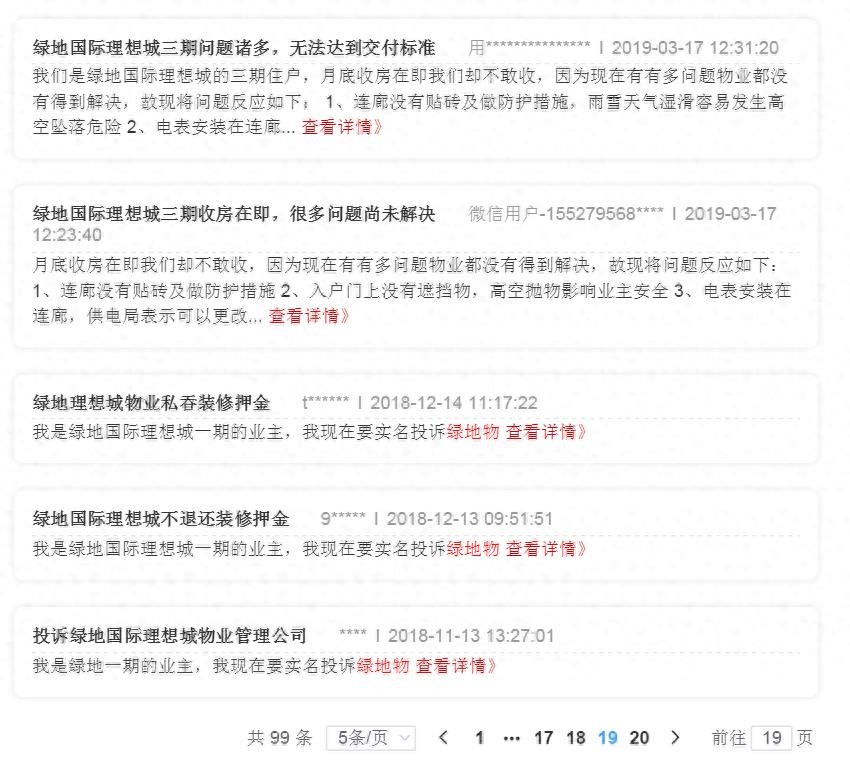 自2018年交房之后,武汉城市留言板上关于绿地国际理想城项目物业的投诉不断,包括物业不作为,垃圾不及时清理等等,2021年12月23日绿地国际理想城业主成立业委会,在更换物业这一过程中也是矛盾不断,最终在区管委会、街道、社区在开了九次联席会后得以解决。
