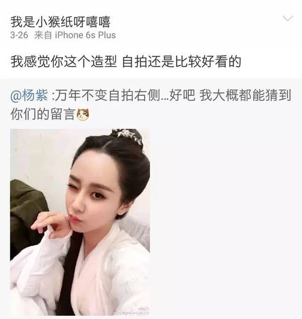 杨紫小号没事就转发大号的内容,顺便自夸一波。