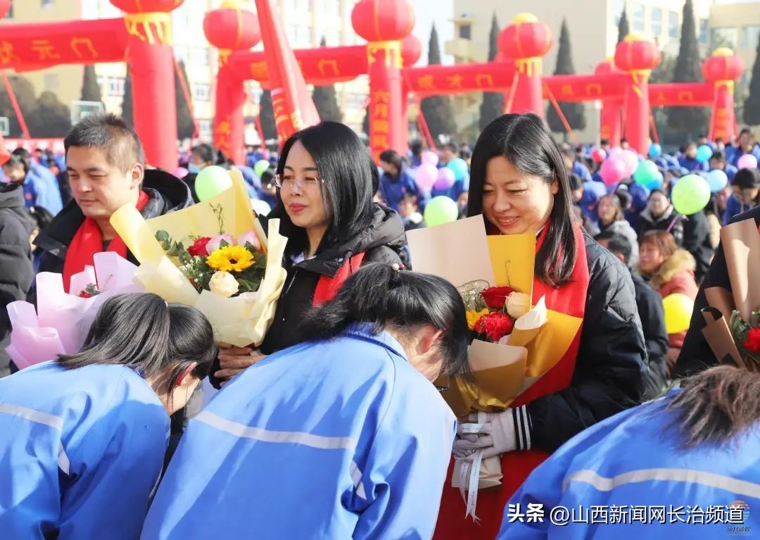 现场记者 刘敏:风雨兼程十八载,砥砺奋进新时代。观众朋友,我现在所在的位置是沁县中学2025届高三年级“奋斗百日 青春报国”思政教育暨成人礼大会的活动现场,这里彩旗飘扬,鼓声阵阵,标语醒目,气氛热烈。高三年级的全体师生齐聚在这里,发出了铿锵誓言,奏响了他们向梦想迸发,向高考冲刺的进行曲。十年磨砺玉汝成,百日策马闯雄关!待六月繁盛,相信我们沁中少年定将铸就不凡,王者归来!