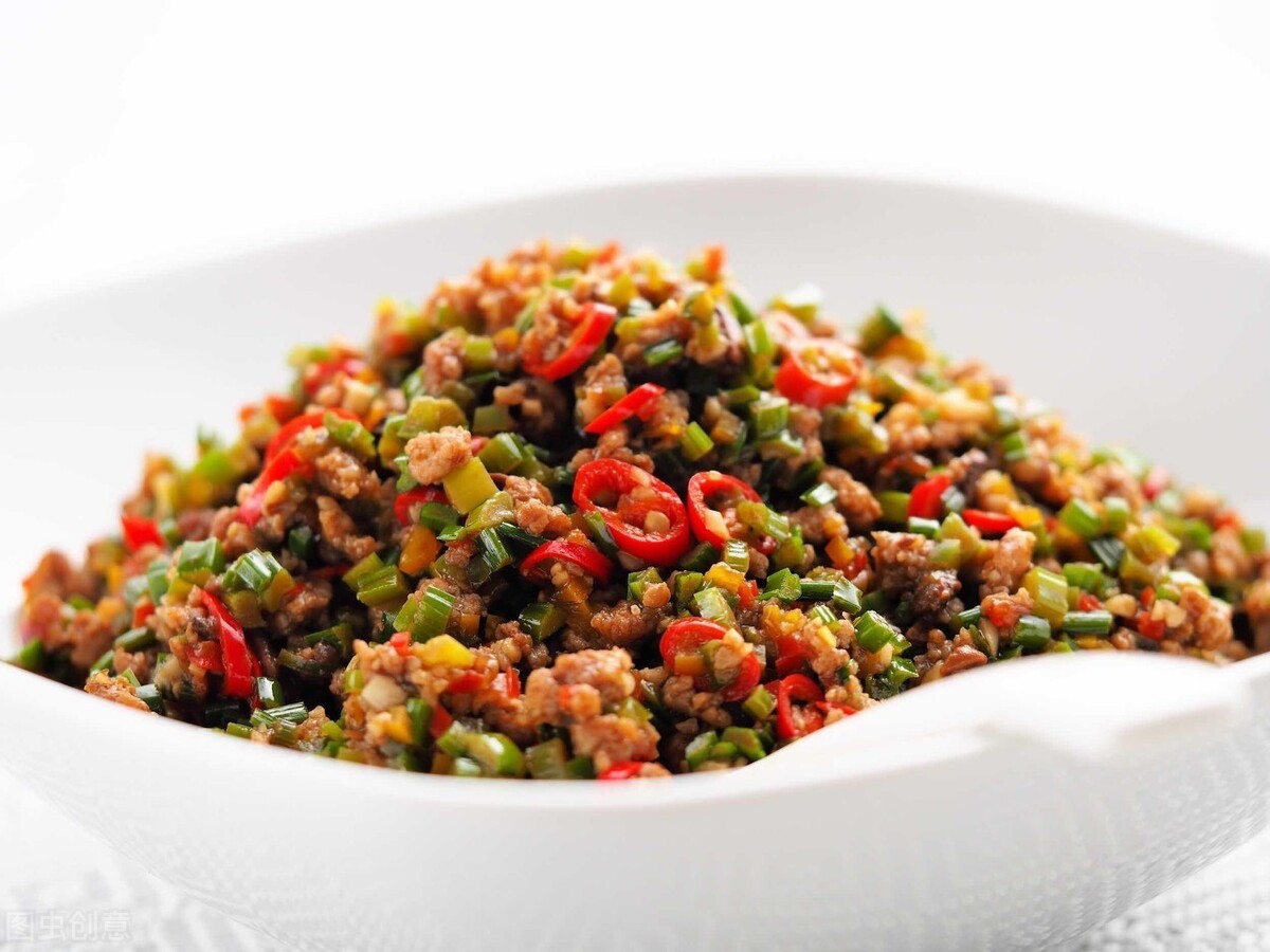 这可不是真的炒苍蝇头,而是一种在台湾很受人喜爱的家常小炒。主要是用肉末、蒜末、豆豉和红辣椒炒出来的小炒,炒出来又香又辣,吃起来很好下饭。苍蝇头的由来是因为里面的配料都是小小粒的,猪肉切成小颗粒,蒜薹也是切成小段小段的,豆豉也是小小颗的。看起来就像“苍蝇头”。