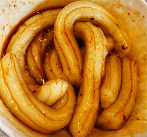 粉耗子就像韩国的年糕,是东北人民很喜欢吃的一种面食。“粉耗子”的口感糯糯的很有嚼劲。很多人喜欢加上香辣酱或者是甜辣味的辣椒酱搭配着一起吃。韩国的朋友来到东北吃到“粉耗子”就像我们出去国外吃到一道小炒菜一样,就是家的味道。很多韩国人也是很喜欢这道小吃的。