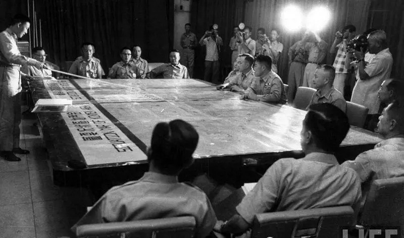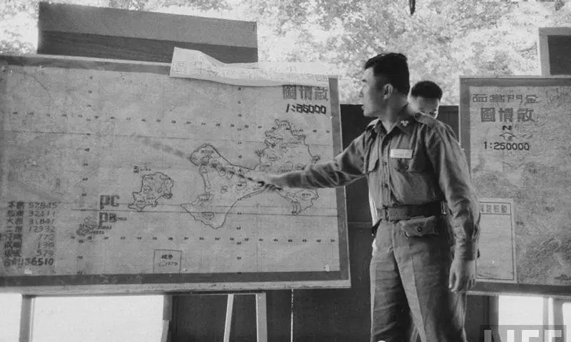 图为金门炮战时的金门军队的会议。