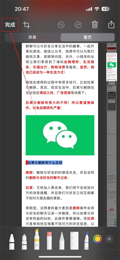 其实,此时的长截图已经生成,如图界面的右侧。然后,点击左上角的“完成”选项。